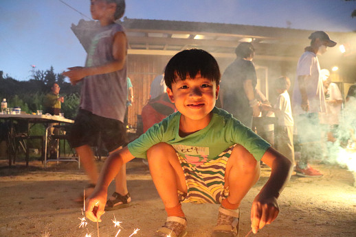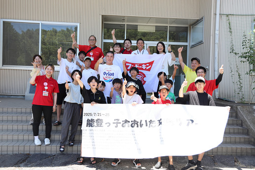 フンドーキン醬油ドレッシング工場ではたまねぎの皮むき体験とグループに分かれて子どもたちだけでドレッシングを調合。「レシピにこだわらずオリジナルにしたよ!」と笑顔を見せ、山盛りのサラダを完食していました。その後、大分大学で学生と交流し、OBSボウルで能登にはないボウリングをプレイし汗をかき、大分市内の寺でBBQを楽しみました。大きなけがはなく、能登に到着することができたようです。