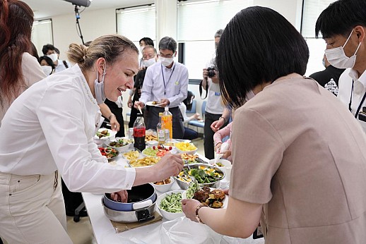 また、コープおおいたの惣菜担当が作ったボルシチとスメタナ、日本食としてカレーも並べ、本場の味付けと食べ比べもしました。