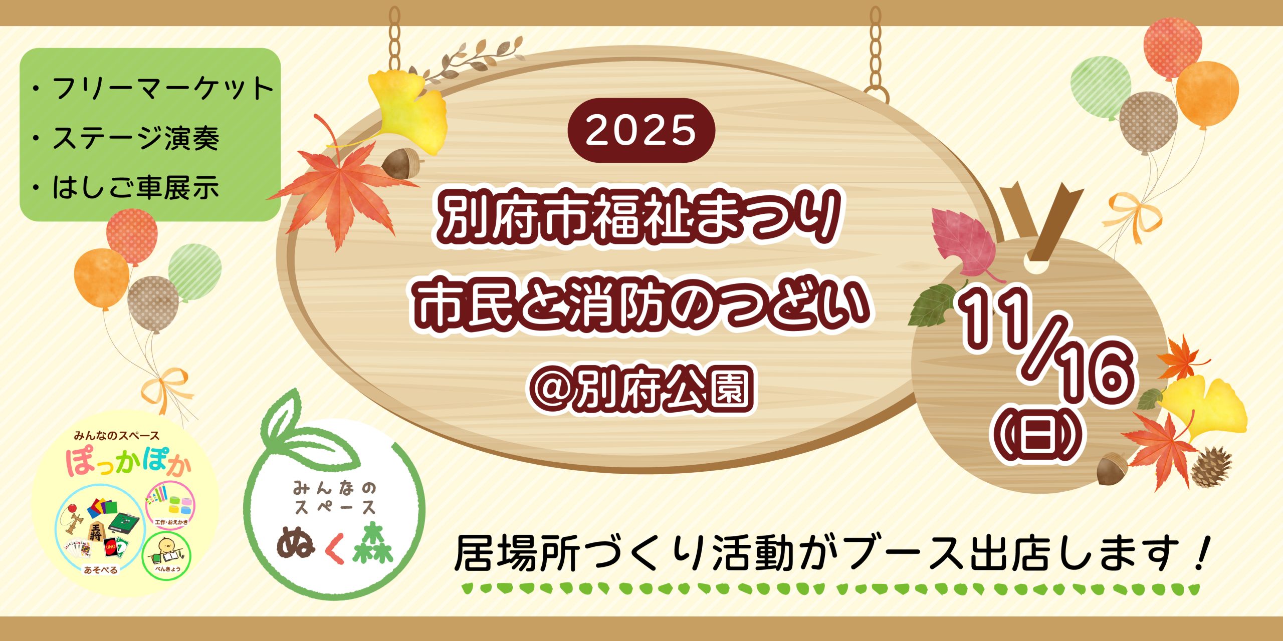 別府公園で開催される「2025別府市福祉まつり・市民と消防のつどい」に居場所づくり「みんなのスペースぽっかぽか」と「みんなのスペースぬく森」が初出店します!