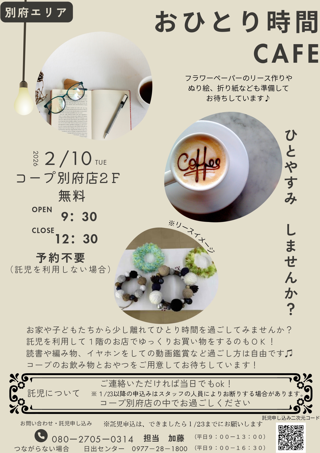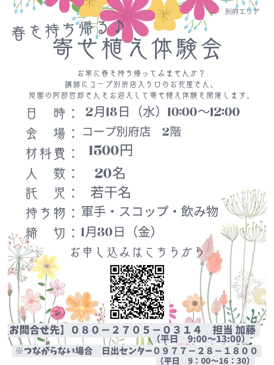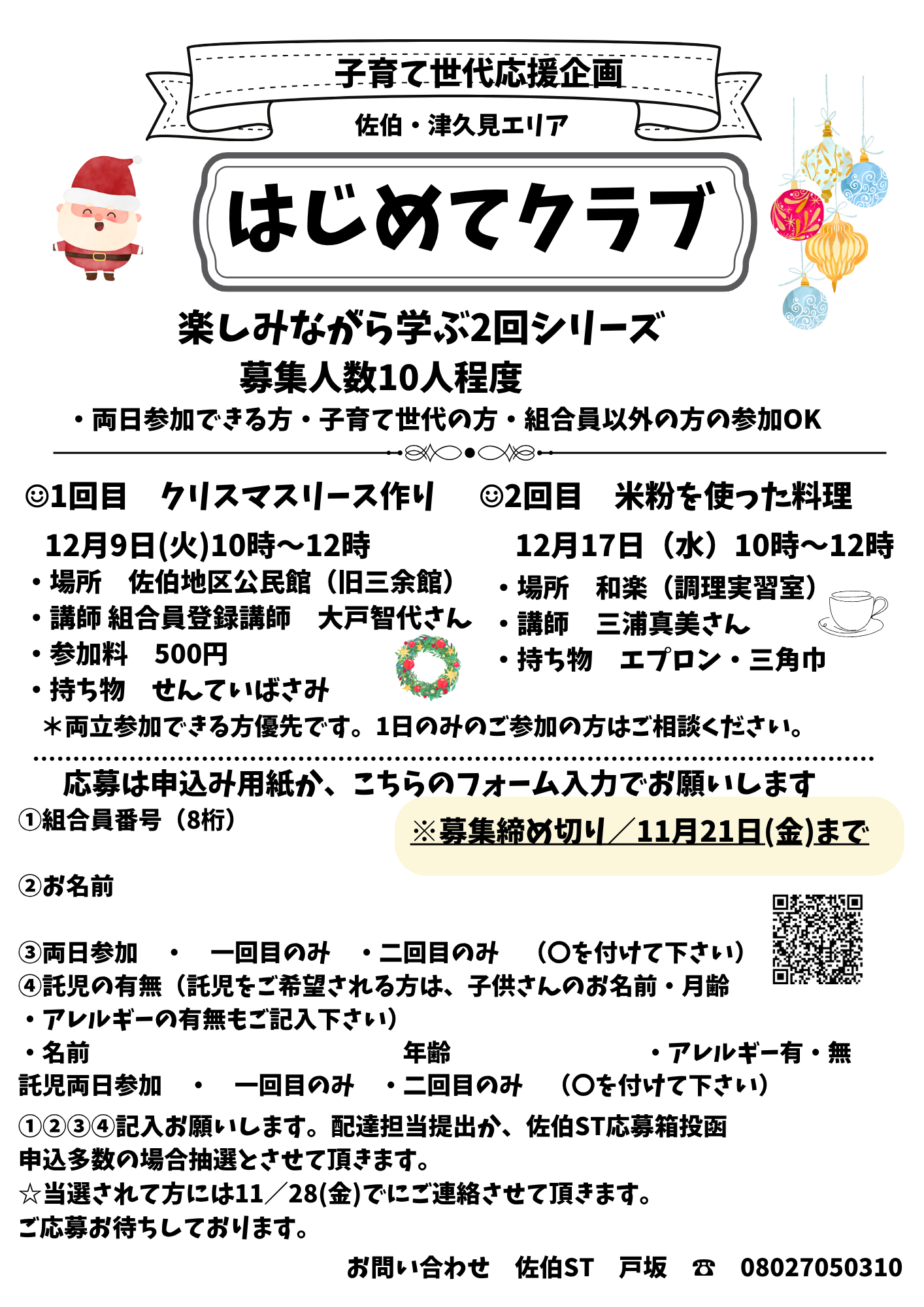 組合員活動コーディネーター 電話番号080-2705-0312(平日9時~13時)