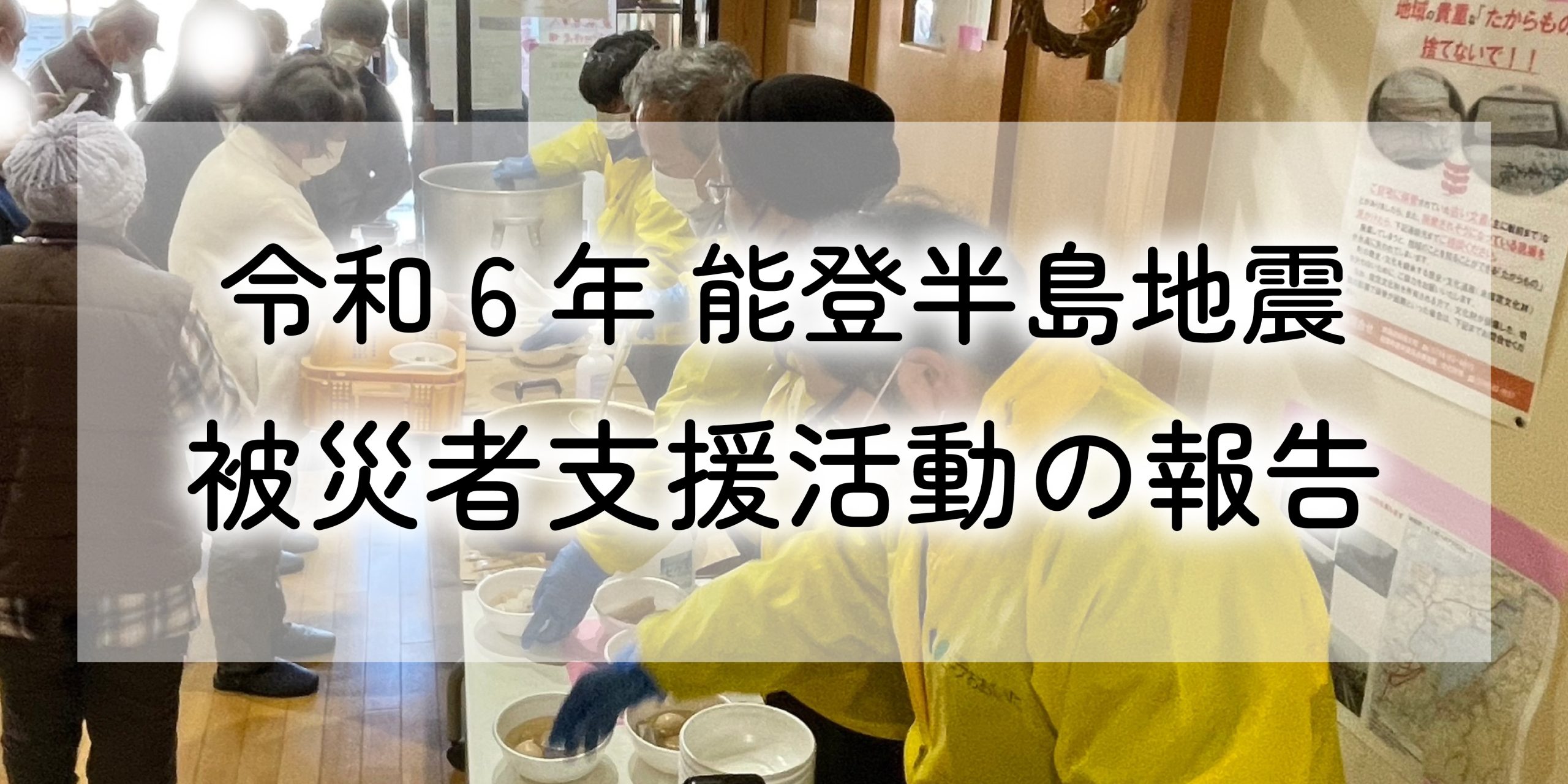今回の支援内容は、輪島市にある地域スーパーの「もとやスーパー」を会場とした地域住民の方々への炊き出しと、能登町の仮設住宅にて今もなお避難生活を余儀なくされる皆さんへの炊き出しを行いました。
