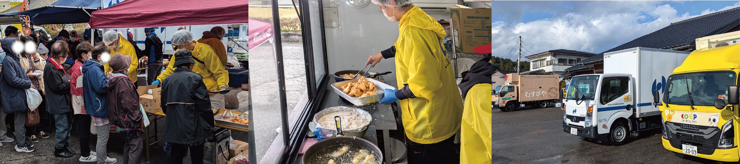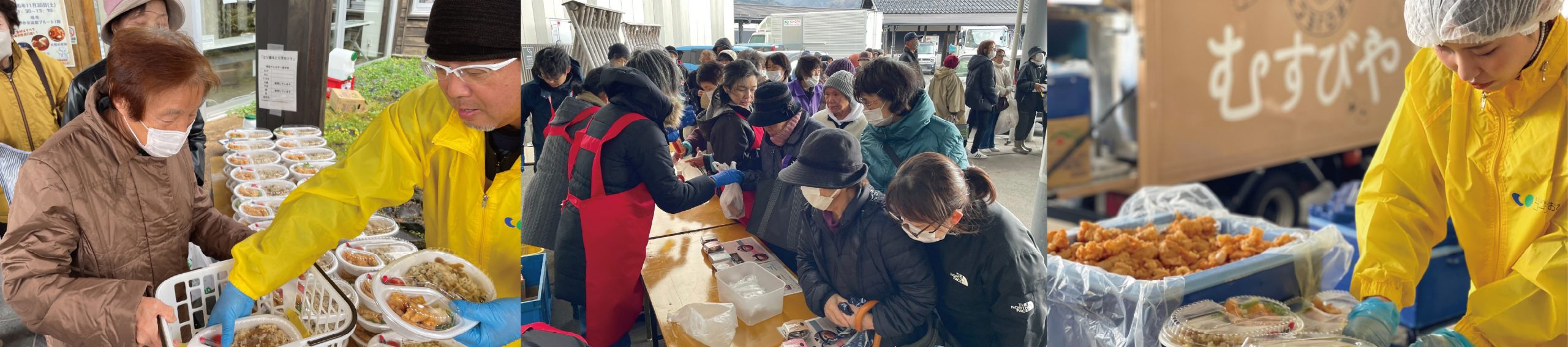今回はNPO法人リエラ様を通じて石川県能登町役場および能登町社会福祉協議会より要請をうけ、コープおおいた職員が「キッチンカーむすびやによる炊き出し支援」を行います。