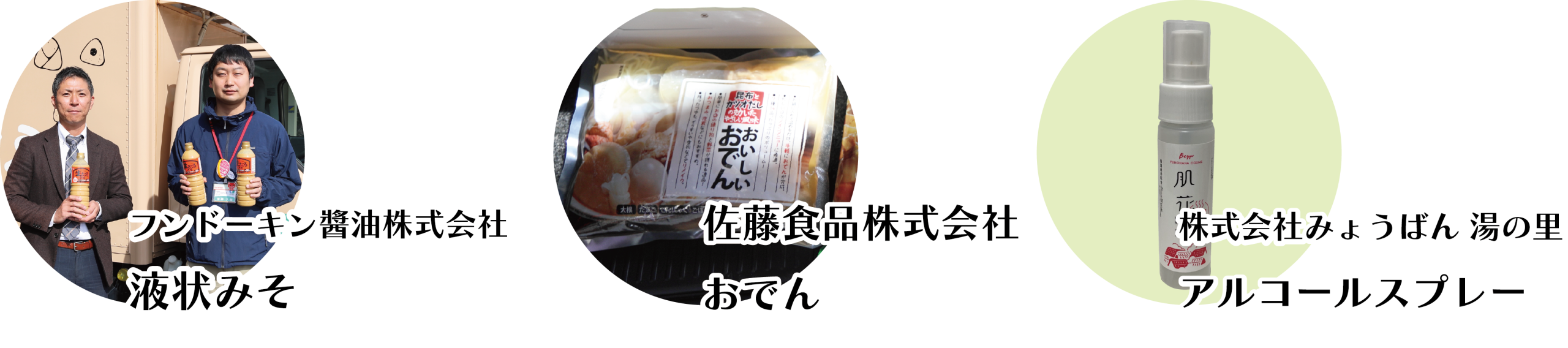 また、今回の支援で以下の企業・団体様より物資のご提供をいただきました。ご協力いただきありがとうございました。