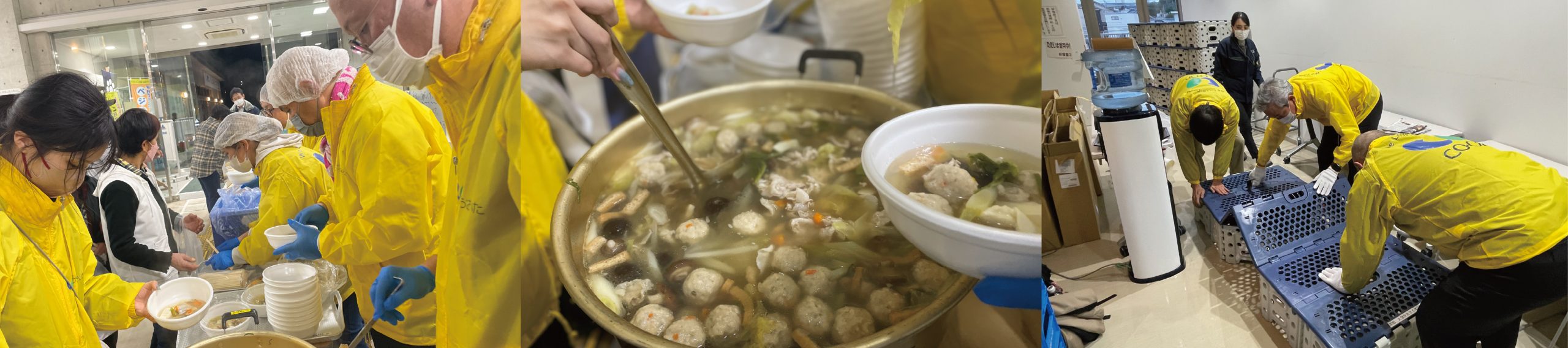 大分市佐賀関地域で発生した大規模火災を受け、翌19日午後~27日(24日を除く)、佐賀関市民センターにて炊き出し支援や環境整備などのボランティア活動を行いました。