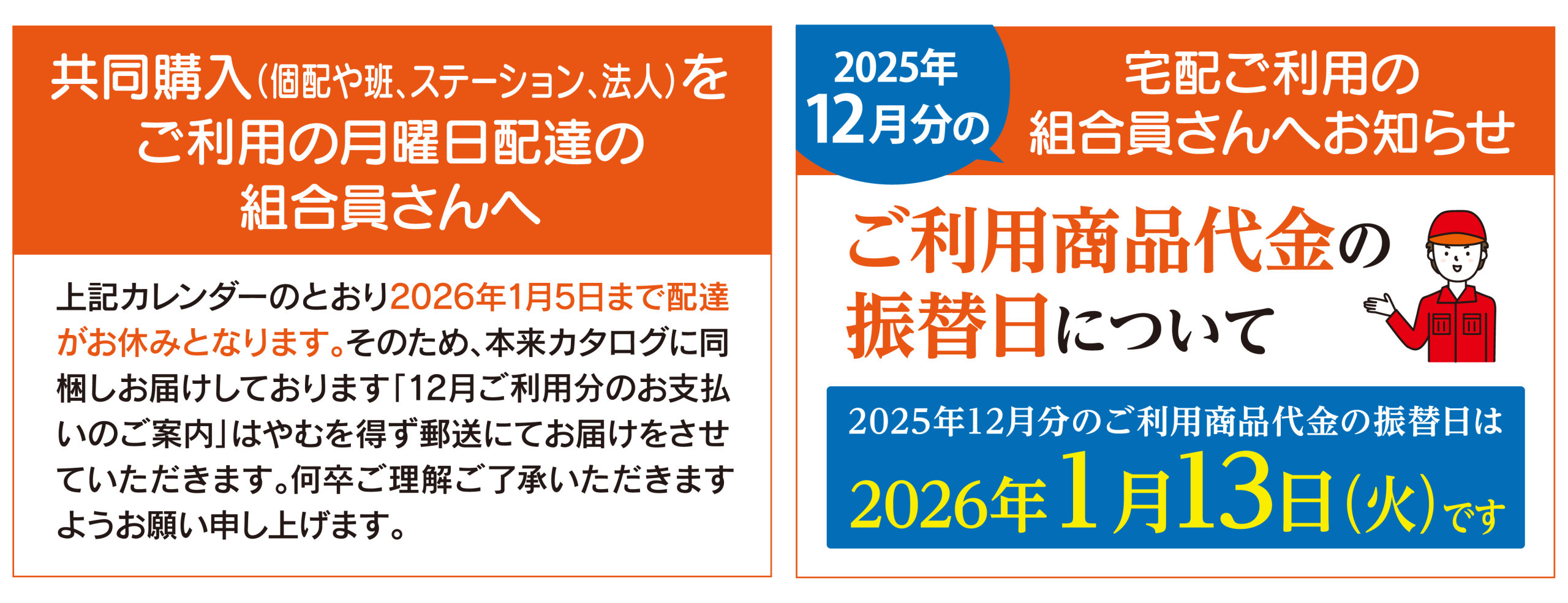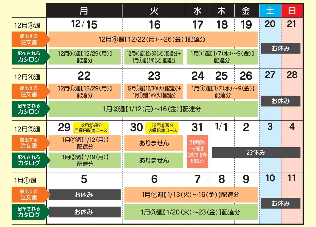※12月⑤週企画については「月曜日・火曜日配達コース」の組合員のみが対象となります。
