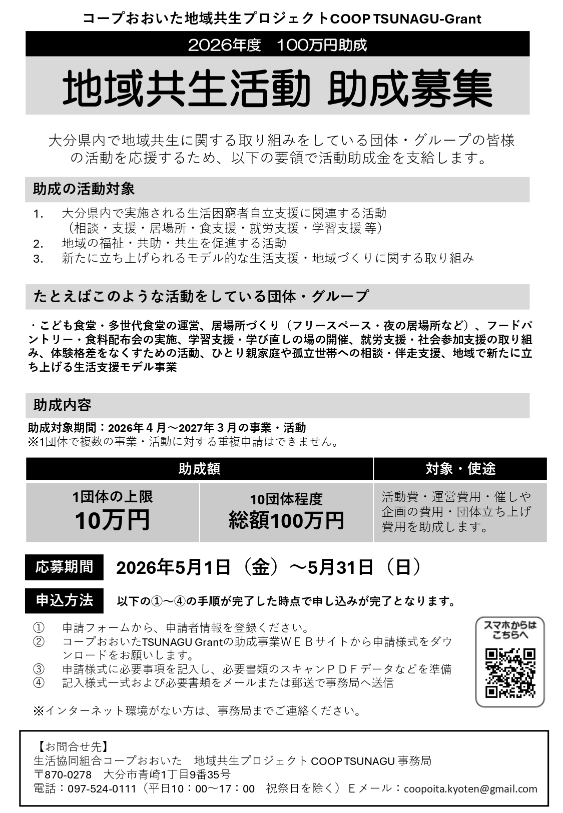| 助成対象期間 | 2026年4月〜2027年3月の事業・活動 |