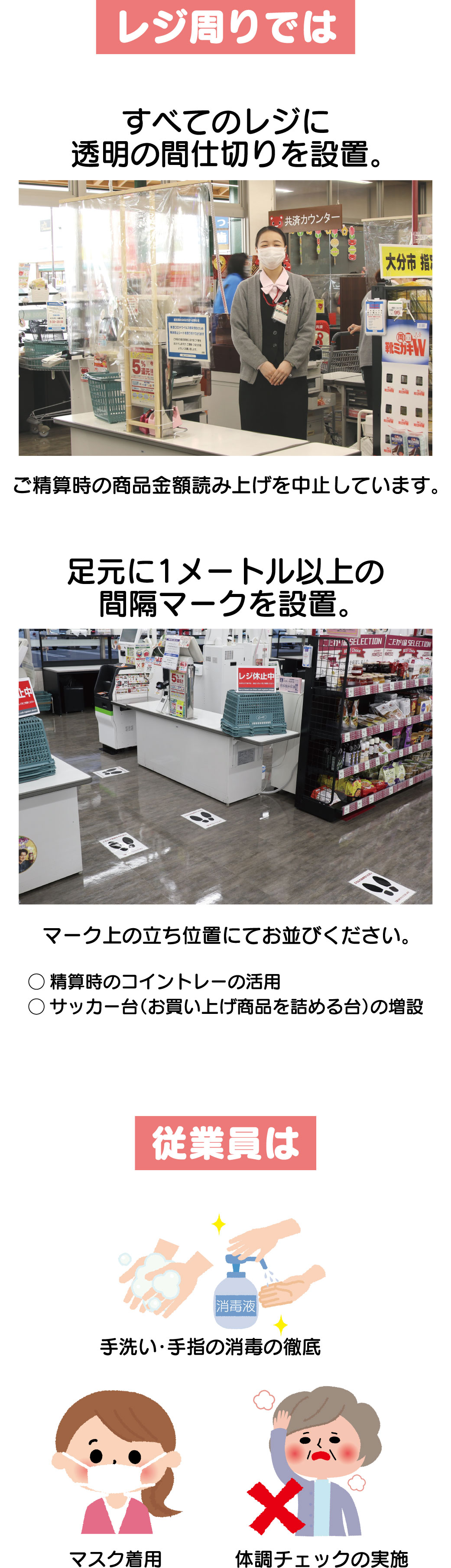 当生協は、ご来店いただく地域のみなさまと従業員の安全と安心を最優先に考え、新型コロナウイルス感染症の拡大防止に向けた取り組みを今後もすすめてまいります。