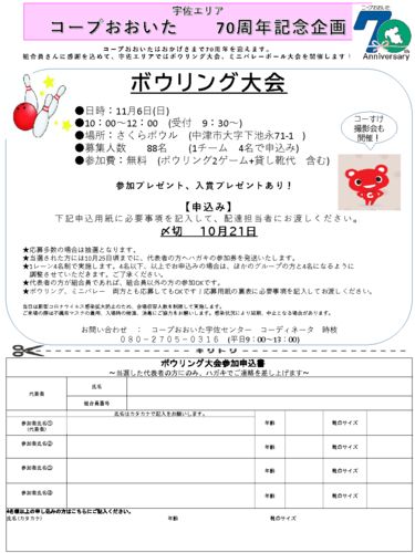 組合員活動コーディネーター(宇佐センター)0978-32-3510