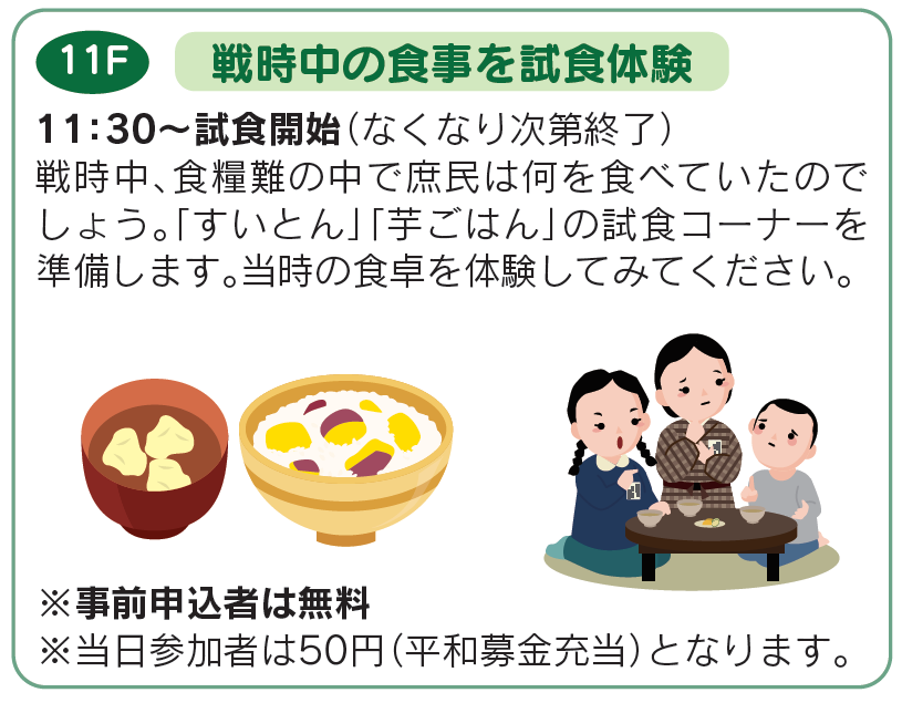 事前参加登録で「戦時中の食事」ご試食チケットをプレゼントします。